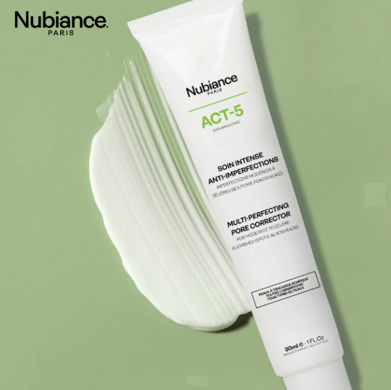 Le soin intense ACT-5 de Nubiance est spécialement formulé pour les peaux sujettes aux imperfections, taches et brillances. Grâce à une synergie d’actifs dermatologiques tels que l’acide salicylique, la niacinamide et l’alpha-arbutine, il agit en profondeur pour purifier, lisser et unifier le teint. Son efficacité est prouvée sur les peaux mates à foncées, souvent plus sujettes aux marques résiduelles.