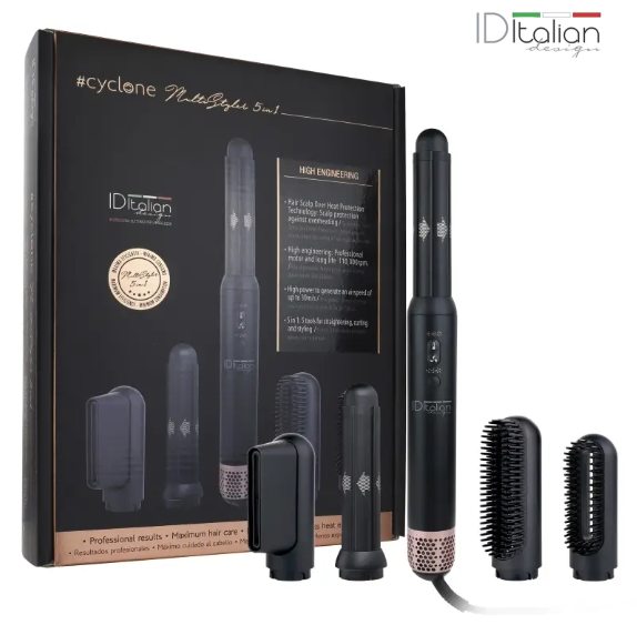 La brosse multifonction 5 en 1 de Italian Design est l’outil idéal pour réaliser un brushing professionnel à la maison. Grâce à ses 5 embouts interchangeables, elle permet de sécher, lisser, boucler, donner du volume ou styliser vos cheveux selon vos envies. Sa technologie ionique réduit les frisottis, améliore la brillance et protège la fibre capillaire. Un indispensable pour toutes celles qui aiment changer de look facilement et rapidement.