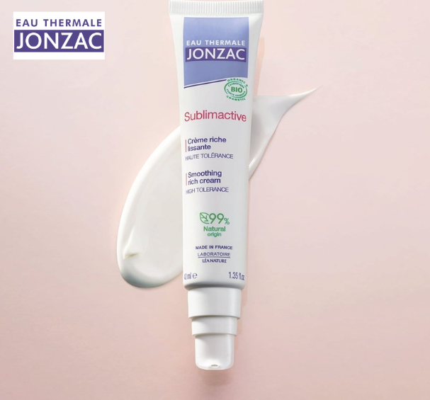 La crème riche lissante sublimactive de Jonzac est spécialement formulée pour les peaux matures ou sujettes aux premières rides. Enrichie en eau thermale de Jonzac, acide hyaluronique et en actifs anti-âge bio, elle hydrate intensément, lisse les traits et renforce la barrière cutanée. Sa texture onctueuse pénètre facilement pour un confort immédiat, tout en apportant éclat et souplesse à la peau.