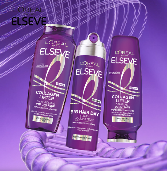 La nouvelle routine Elseve Collagen Lifter de L’Oréal Paris est spécialement conçue pour redonner volume, tenue et densité aux cheveux fins, plats ou fatigués. Grâce à sa formule enrichie en collagène végétal, cette gamme lifte la fibre capillaire dès la racine, tout en renforçant et hydratant les longueurs. Résultat : une chevelure plus épaisse, plus rebondie et visiblement revitalisée.