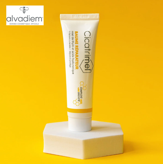 Le baume réparateur Cicatrimel de Alvadiem est un soin dermo-cosmétique formulé à base de miel stérilisé, de calendula bio et de gelée royale. Il favorise la réparation cutanée, soulage les irritations et protège les peaux fragiles ou sensibilisées. Sa texture riche mais non grasse pénètre rapidement pour apaiser dès la première application, tout en respectant les peaux les plus délicates.