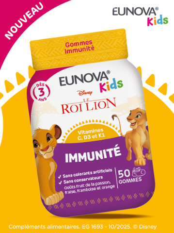 Les gommes immunité EUNOVA Kids sont spécialement formulées pour renforcer les défenses naturelles des enfants, tout en leur faisant plaisir ! Enrichies en vitamines essentielles (C, D), zinc et acérola, elles contribuent au bon fonctionnement du système immunitaire. Leur texture moelleuse et leur goût fruité font de la routine santé un moment simple et agréable.