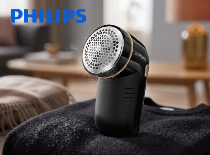 Le rasoir anti-bouloche de Philips est l’allié idéal pour éliminer rapidement les peluches et redonner un aspect neuf à vos textiles. Pulls, manteaux, canapés ou couvertures : il s’adapte à tous les tissus grâce à sa grille performante et ses différentes hauteurs de coupe. En quelques passages, vos vêtements retrouvent leur douceur et leur éclat d’origine.