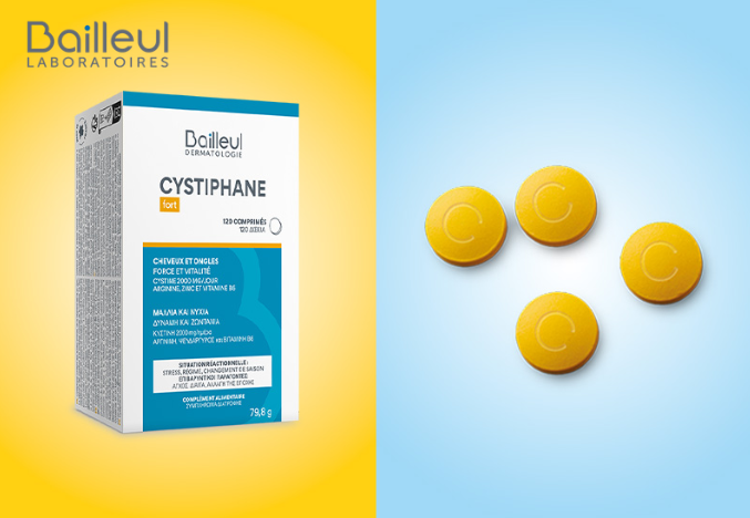 Le complément alimentaire Cystiphane Fort des Bailleul Laboratoires est spécialement formulé pour renforcer les cheveux fragilisés et stimuler leur croissance. Grâce à une combinaison d’actifs reconnus comme la cystine, la vitamine B6 et l’arginine, il aide à lutter contre la chute de cheveux passagère tout en améliorant la résistance des ongles. Idéal en période de fatigue, de stress ou de changement de saison.